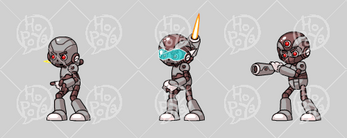 Grey Cyborgs character spritesheet for side scrolling action adventure hack and slash 2D mobile game.